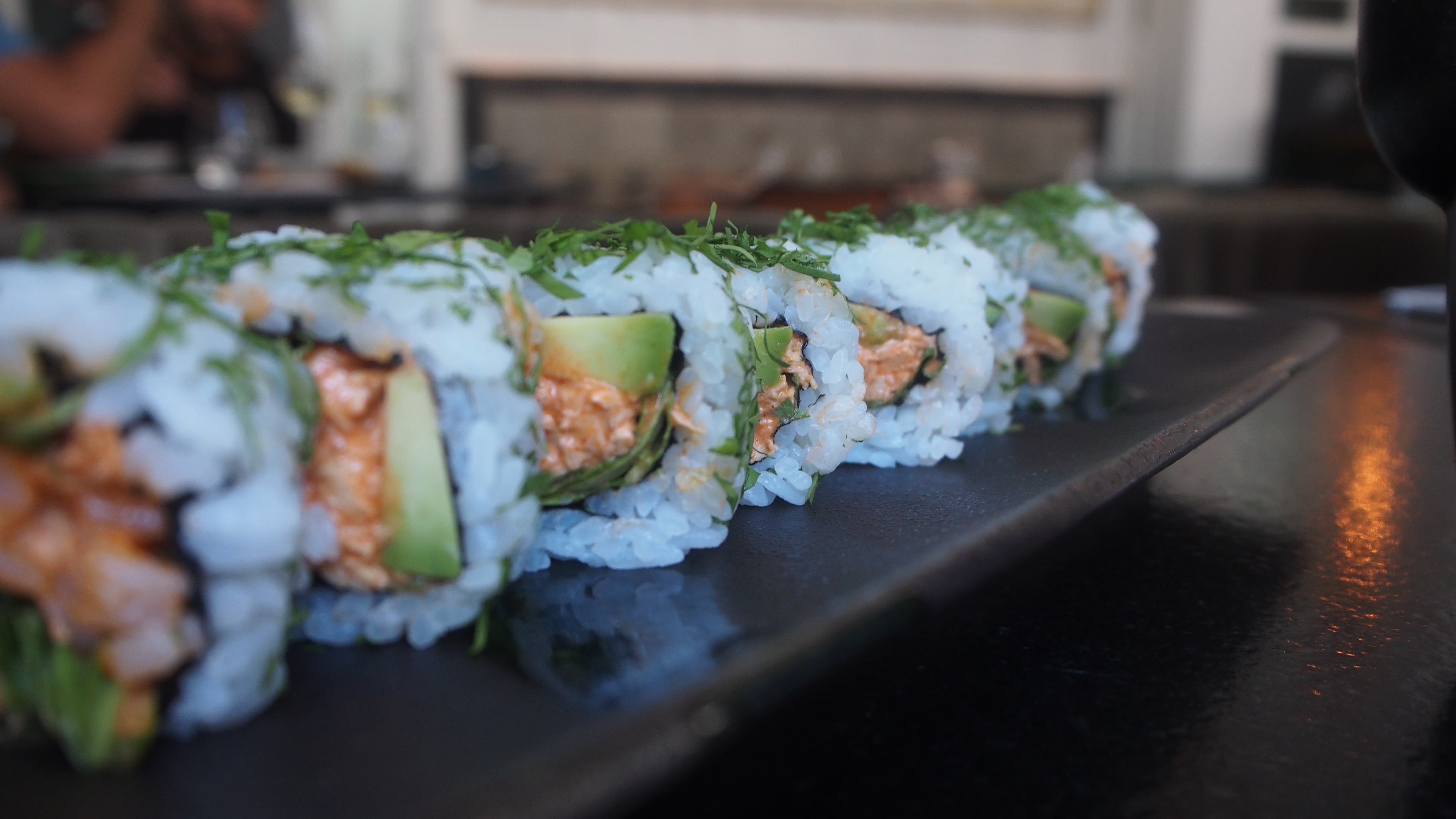 - No podéis iros sin probar uns Nigiris y sus Uramakis. El Nigiri de gamba de Palamós a la plancha o sus uramakis de pollo con mayonesa anticuchera, rúcula y cilantro.