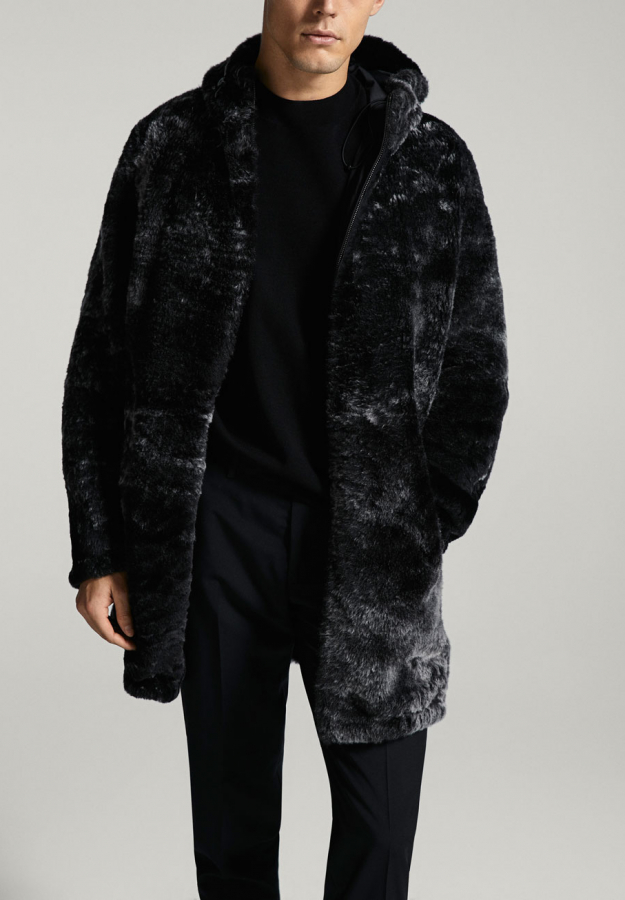 Abrigo reversible de Massimo Dutti. Pelo en una cara y tejido técnico en la otra. Es una mezcla entre un clásico y una pieza muy moda. Su precio es caro pero vale la pena apostar por una prenda así: 999€
